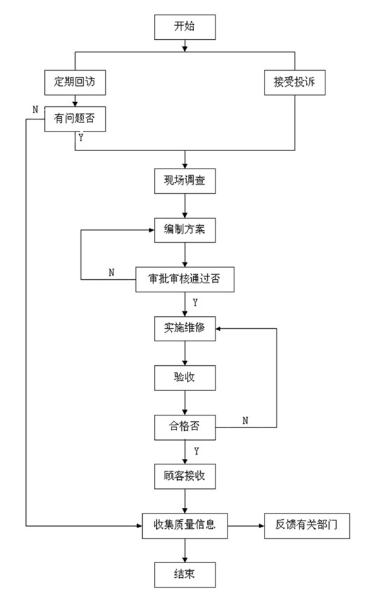 13.1公司工程部会同技术质量部制定年度回访计划,以文件的形式下发至相关单位。属保修期内的工程,每年不少于一次回访。回访可以采用信访、电话、走访等形式访问顾客,听取顾客意见。回访时由项目部填报《工程回访记录》并归档;